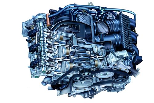 Displacing 3.6 litres and developing maximum output of 235 kW (320 bhp),the power unit ensures supreme performance also in the 911 Carrera 4,with a minimum of 5 and a maxi- mum of 40 per cent of the drive power going to the front wheels,depending on road con- ditions.Acceleration from 0 - 100 km//h,as on the rear-wheel-drive Carrera,is in exactly five seconds.At 285 km/h or 177 mph (six-speed manual gearbox),the top speed is also the same.