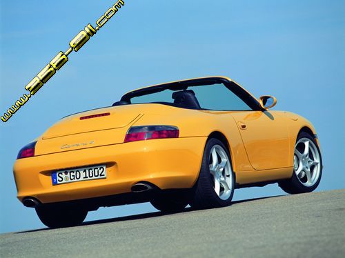 The cabriolet versions of the 911 come with a heated rear window made of "real " glass improving not only visibility to the rear,but also motoring comfort in cold and wet weather. The new rear window is also less likely to form scratches when the driver removes ice in winter.A further remarkable feature is the roof's folding system:Like on the Boxster the roof of the 911 cabriolet folds up like a letter Z.The upper side of the roof therefore faces to the outside even when the roof is open,protecting the roof liner from dirt.