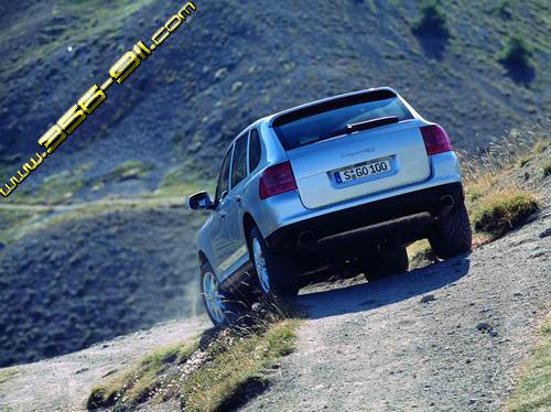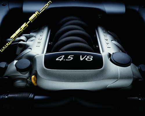 The brand-new V8 normal-aspiration power unit in the Cayenne S develops maximum output of 250 kW (340 bhp)at 6000 rpm from a capacity of 4.5 litres.Featuring 32 valves and integral dry sump lubrication,this 8-cylinder sparkignition power unit comes with two rows of cylinders opposed at an angle of 90 °as well as infinitely adjustable intake camshafts. The engine itself is able to operate smoothly even at an angle of 45 °,simply ideal for offroad requirements.The crankcase is closed at the top facing the cylinder head in closed-deck design,forming a complete system together with the cylinder cooling ducts again in the interest of superior hill-climbing and downhill driving abilities.Applying the good experience gained with the engine of the Boxster through its particular cylinder geometry,Porsche's engineers have chosen specific dimensions also for the V8:The crankshaft,for example, runs with stroke of 83 millimetres or 3.27 ",which,in combination with the cylinder bore of 93 millimetres or 3.66 " carried over from the Boxster S,,provides engine displacement of exactly 4511 cc.The Cayenne S features cast aluminum pistons providing a compression ratio of 11.5:1.The cylinder head follows the two-piece concept already applied on the 911 Turbo,the separate crankcase with cup tappets and crankshaft bearings allowing use of an aluminium/silicon alloy in the cylinder head able to withstand high temperatures.