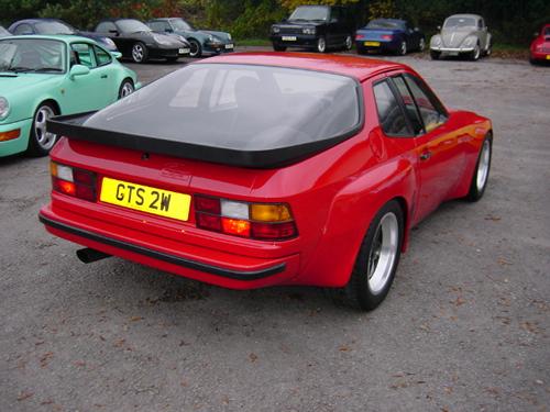 The Porsche 924 GTS is the Ultimate road legal 924, only 59 were made and 15 of these were in clubsport specification. All were finished in Red and were LHD. The GTS was fitted with poly wings (fenders), bumpers and light weight aluminium doors and bonnet. It was fitted with a thinner bonded in glass windscreen, plexiglass side windows and rear hatch. Perspex fixed headlights to give extra space under the bonnet for the larger front mounted intercooler. 120 litre fuel tank and revised rear suspension of coil spring set up instead of torsion bars. Brakes were as those fitted to the 911 Turbo of the period but with cross drilled vented discs. 40% Limited slip differential.